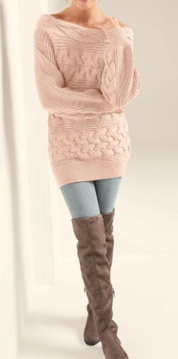 Boatneck Cable Knit Sweater - Peach